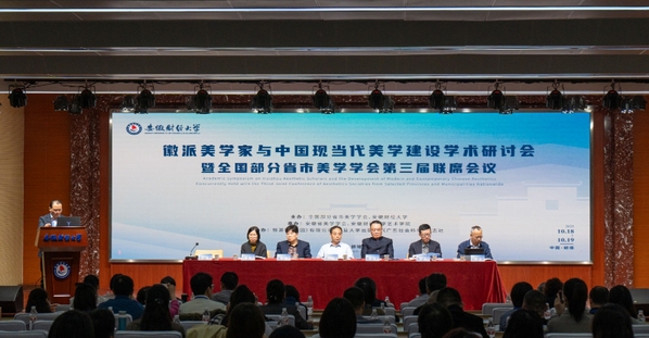 10月18日,“徽派美学家与中国现当代美学建设学术研讨会暨全国部分省市美学学会第三届联席会议”在我院隆重举行。会议由全国十二省市美学学会与安徽财经大学联合主办,安徽省美学学会、安徽财经大学艺术学院承办,恒源祥(集团)有限公司、复旦大学出版社、《广东社会科学》杂志社协办。来自安徽和全国14个省市的150余名学者、艺术家、文化企业家出席了本次盛会。我校党委常委、副校长王兵,全国美学联席会议主席、上海交通大学人文学院祁志祥教授,安徽省美学学会会长、安徽大学哲学学院宛小平,恒源祥集团董事长兼总经理陈忠伟,复旦大学出版社总编王卫东,中华美学学会副秘书长、中国社会科学院哲学所美学室主任卢春红等出席开幕式。开幕式由艺术学院院长许心宏主持。